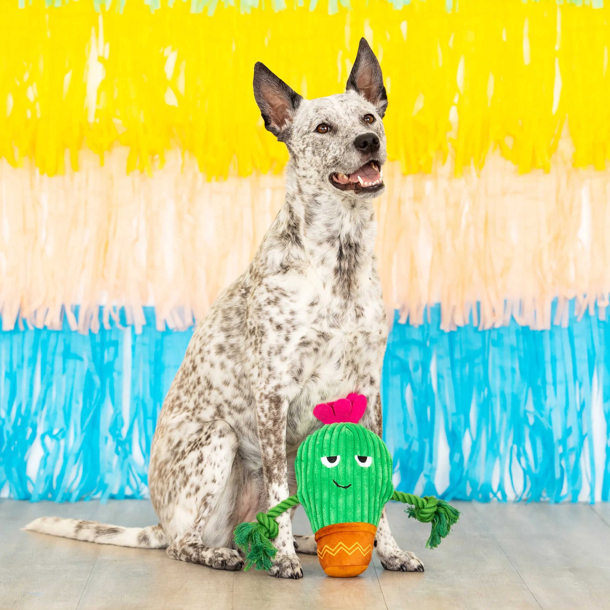 Legetøjet er udstyret med et ekstra højt piv, knitrende crinkle-papir og et tyggevenligt reb, som tilsammen giver masser af variation og underholdning. Ideelt til kast, apport og leg både inde og ude. Din hund vil elske at lege “i solen” med denne farverige ven.