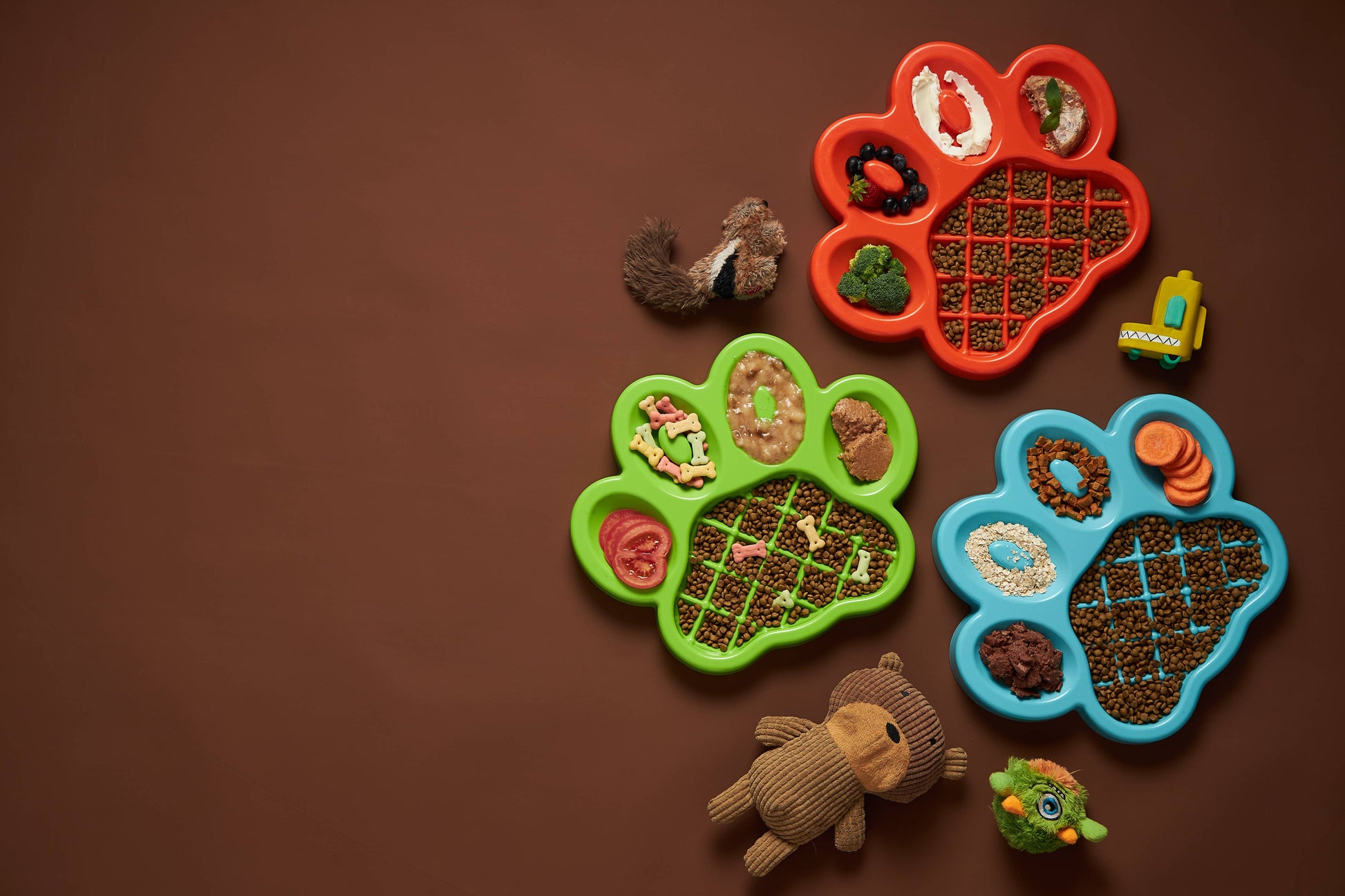 PAW 2-i-1 Slow Feeder & Slikkemåtte er en sjov og innovativ poteformet skål med en aftagelig PAW slikkemåtte med sugekop. Slikkemåtten kan bruges sammen med slow feeder-skålen eller som en ekstra aktivitet under godbidstiden.